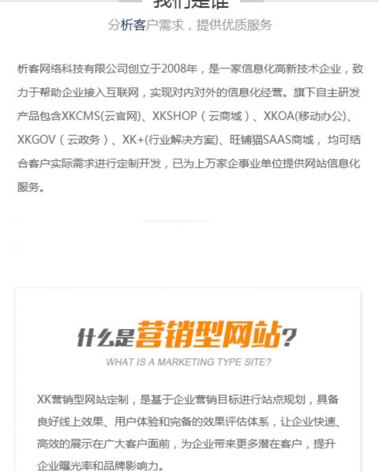 XK营销型网站定制,是基于企业营销目标进行站点规划,具备良好线上效果、用户体验和完备的效果评估体系,让企业快速高效的展示在广大客户面前,为企业带来更多潜在客户,提升企业曝光率和品牌影响力