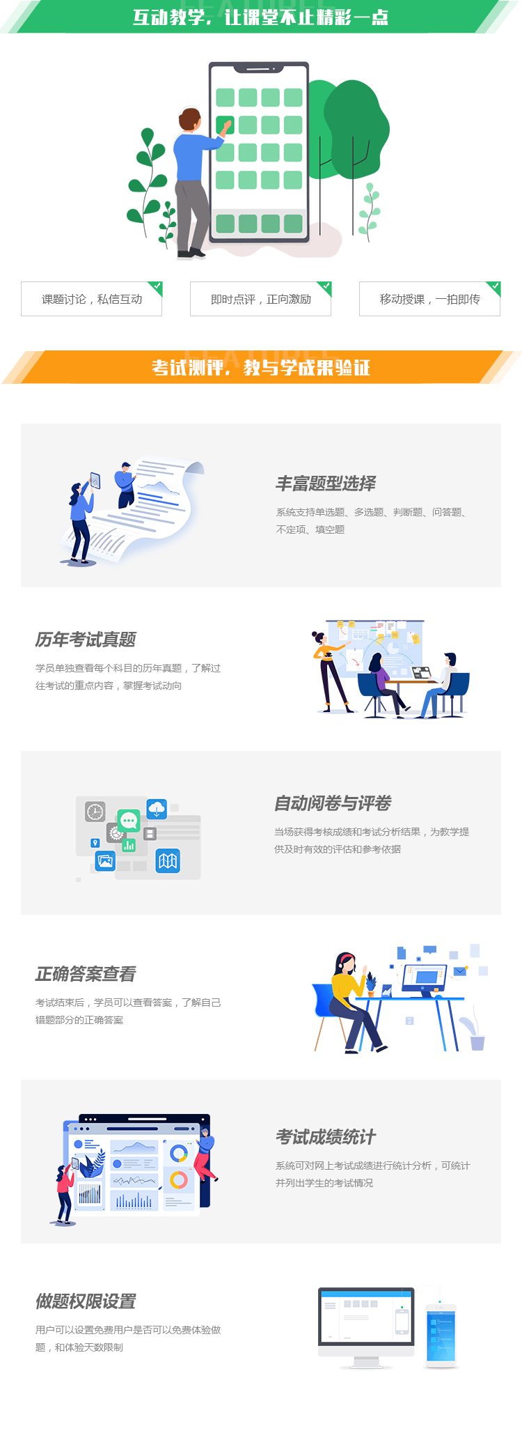 系统支持单选题、多选题、判断题、问答题、不定项、填空题