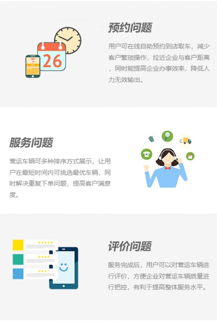 营运车辆可多种排序方式展示,让用户在最短时间内可挑选最优车辆,同时解决重复下单问题,提高客户满意度