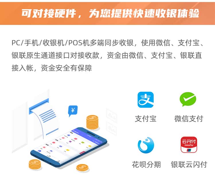多种支付方式:收银系统支持多种支付方式,如现金、信用卡、移动支付等。它可以与各种支付终端和支付网关集成,方便顾客选择适合的支付方式,并确保交易安全和准确性。
